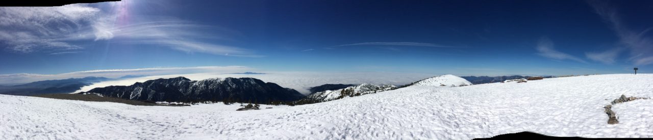 Great little hike up Mt. Baldy, round trip was under 4 hours. Got to the Ski Hut, than the snow appeared. Made the ski hit in an hour than summited about an hour later. Tracks in the snow were easy to follow and more or less hit all the sign posts and trail markers. Just a couple hundred feet before summiting I saw the funniest thing, a gentleman walking down from the summit being followed by a little fat dog. They did not see me since I was a little higher up on a ridge line. I reached the top and took in some great views! The sea of clouds looked amazing! I ate my lunch and enjoyed the windy summit all to myself. After about 20 minutes I started back down and came across the gentleman and the little fat doggy, up close I could now see he was smaller and fatter than I had realized. He was an Alpine Chihuahua! The gentleman told me they hike up here twice a week, I couldn’t believe this little guy did this. Great hike, did not need crampons or a map, gloves were nice at the summit – that wind was chilly.