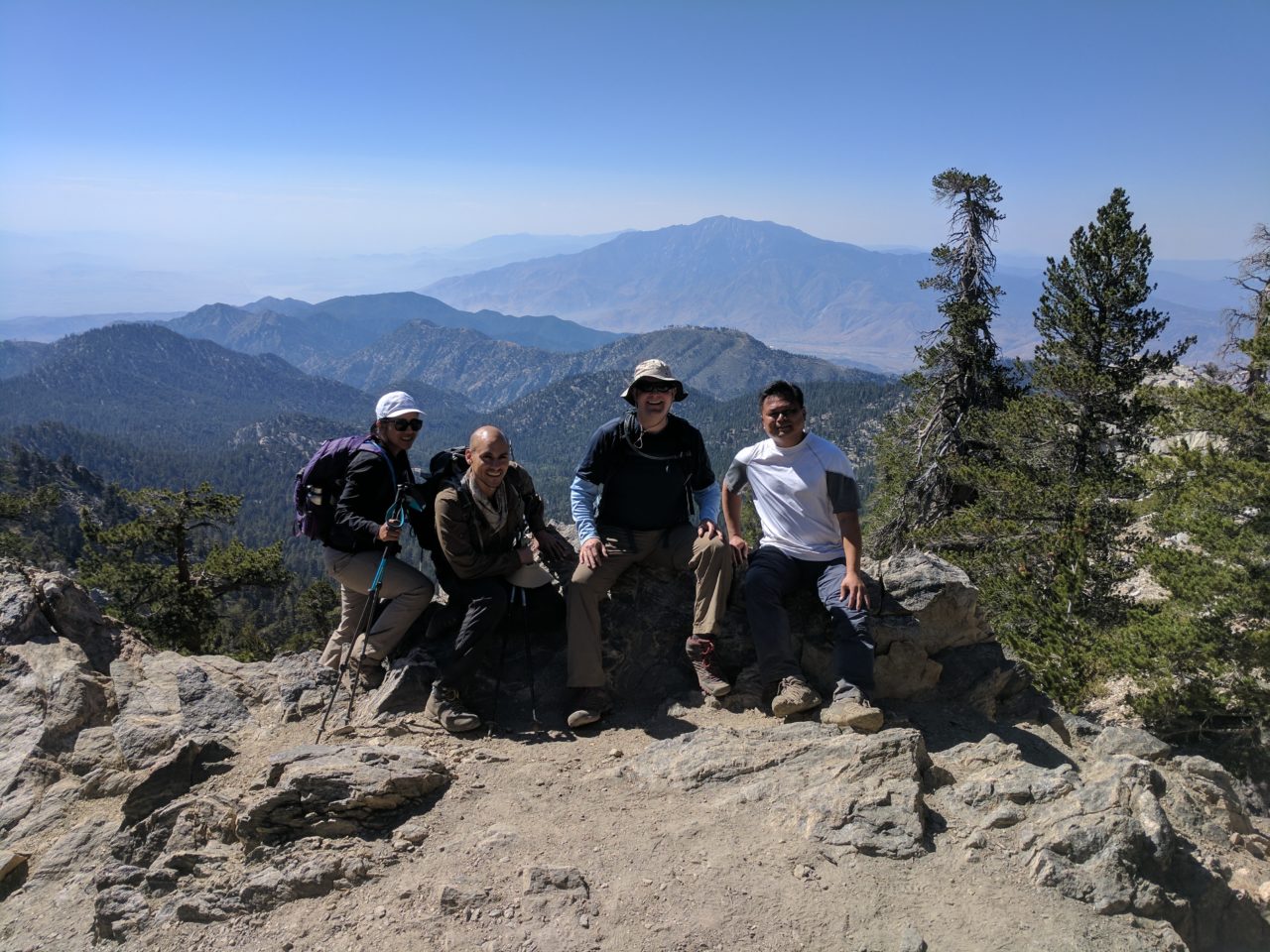 Got a great start beginning the hike at 5:15 AM. This helped keep the heat from being a factor until the end of the day on the descent. I felt the effects of the elevation gain but the support and motivation from our hiking group is the remedy to keep going. Thanks David, Yaneth, and Eddie! At the peak the view was amazing. We sheltered in one of the rock wind breaks to eat lunch. The return trip seemed longer but that was just the fatigue. For me this was definitely a milestone to complete. Halfway there to the 6-Pack!