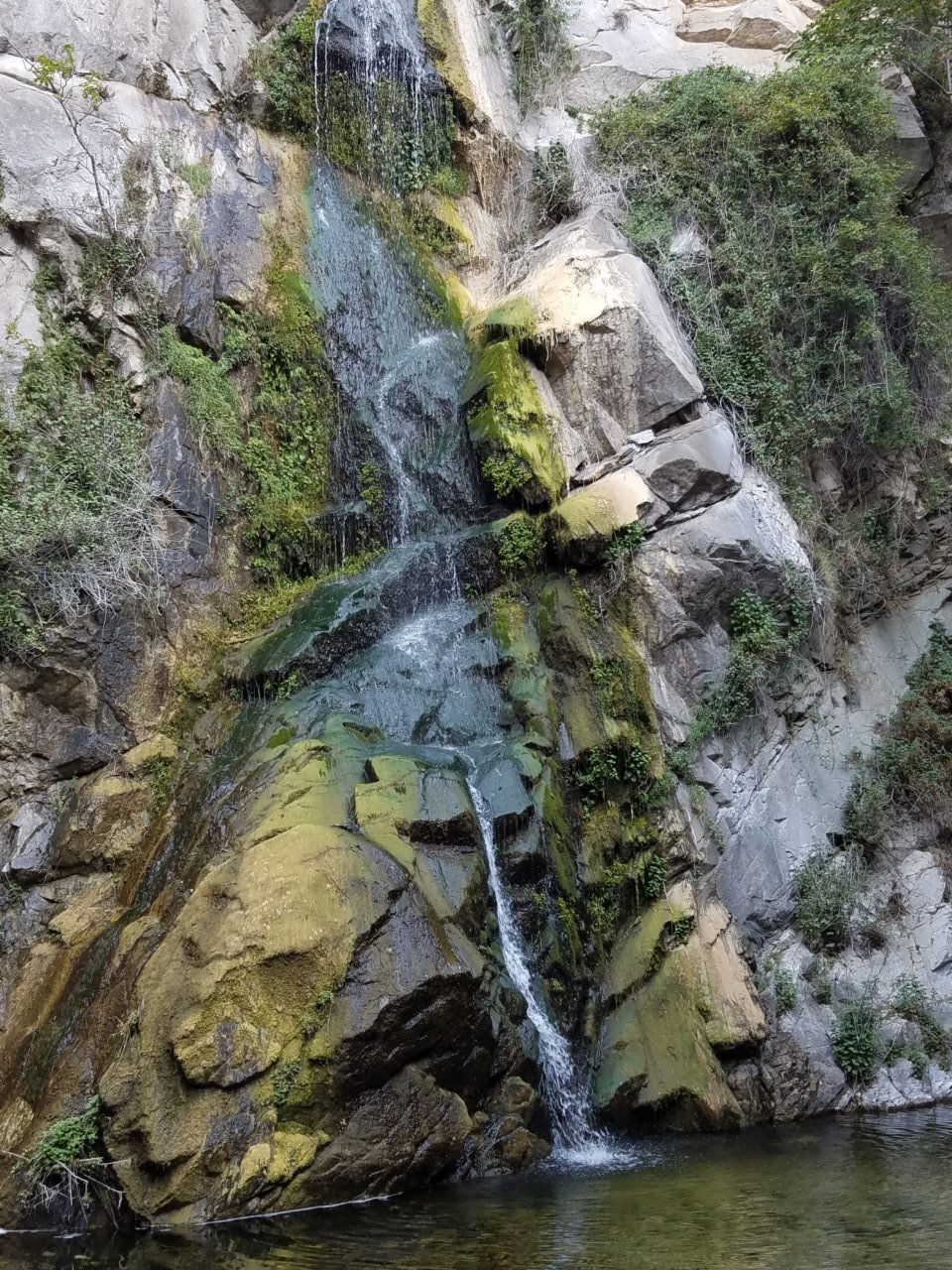 I kept putting this one off because of the heat wave. Sure enough, this was the least fun hike in the 6-pack. Visited Sturtevant Falls and then back tracked to the Gabrielino Trail to Sturtevant Camp and on up to the summit. Hiked most of the trail with a bug net on my head. Shed my pant legs and shirt around Sturtevant Camp, and pretty much sweltered to the top. Of course the Cosmos Cafe was closed so there was no pie reward at the peak (good thing I had packed a lunch). Water is available again at the peak so I topped off. The return trip down Winter Creek and Upper Winter Creek trails was quick with very little other traffic. Got to the car, soaked in sweat. Fortunately I had a change of clothes for the drive home.