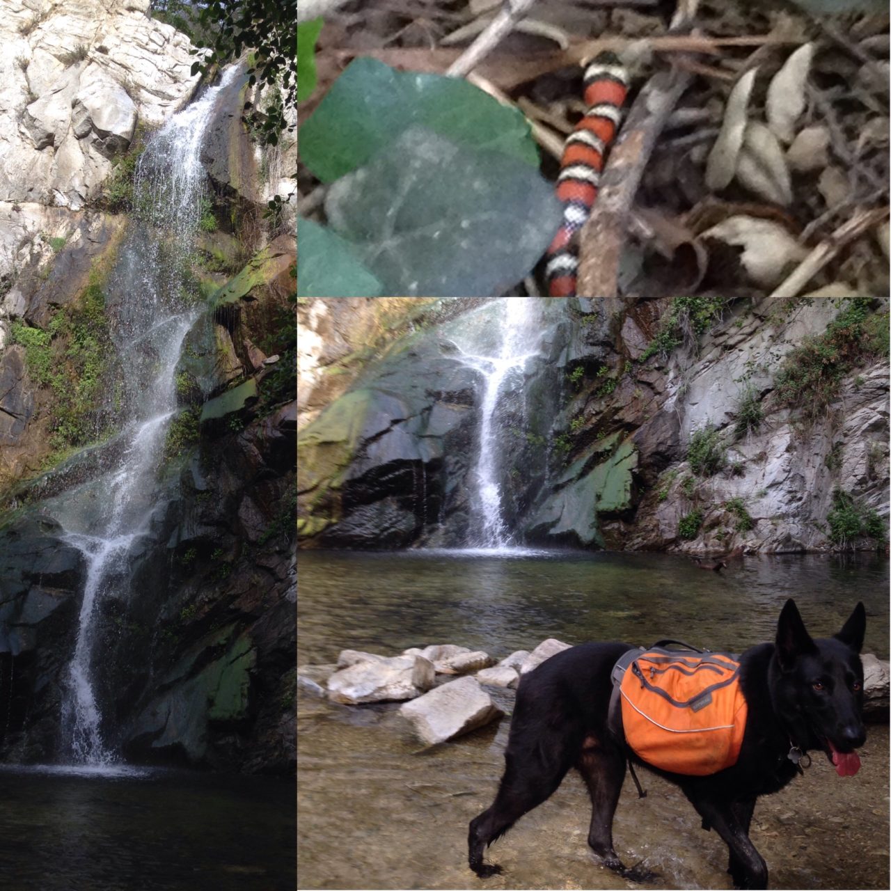 After I had to scrap my earlier planned overnighter at West Fork CG, I decided I’d try a route I’d never done before. Arrived at the Chantry Flat trailhead around 7:30AM (approx 7 cars). Headed down to Sturtevant falls, water still flowing nicely. Then headed up the Upper Falls trail to Spruce Grove CG, the outhouses were swarmed with bees and we also picked up a swarm of black flies that stayed with us all the way to the Cosmic Cafe 😤. It was a tough slog up and that “halfway” sign sure didn’t match up with my gps’s mileage. Stopped up at the Cosmic Cafe to rest, fill up on H2O, and enjoy? the mariachi music. Headed down the old toll road to Winter Creek (also still flowing nicely), checked out Hoegee CG, followed the creek trail back to the bridge, then back Uuuuuup. Lots of people enjoying the afternoon.