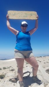 We hit the trail to summit pretty early on Sunday and, luckily, caught a lot of shade going up. It got up to about 90 degrees at some points, so it was a HOT day!!! Although, we did manage to grab a snowball on the way up 😀 Summit took about 5 hours, and I’ve never been happier to see a pile of rocks in my entire life.