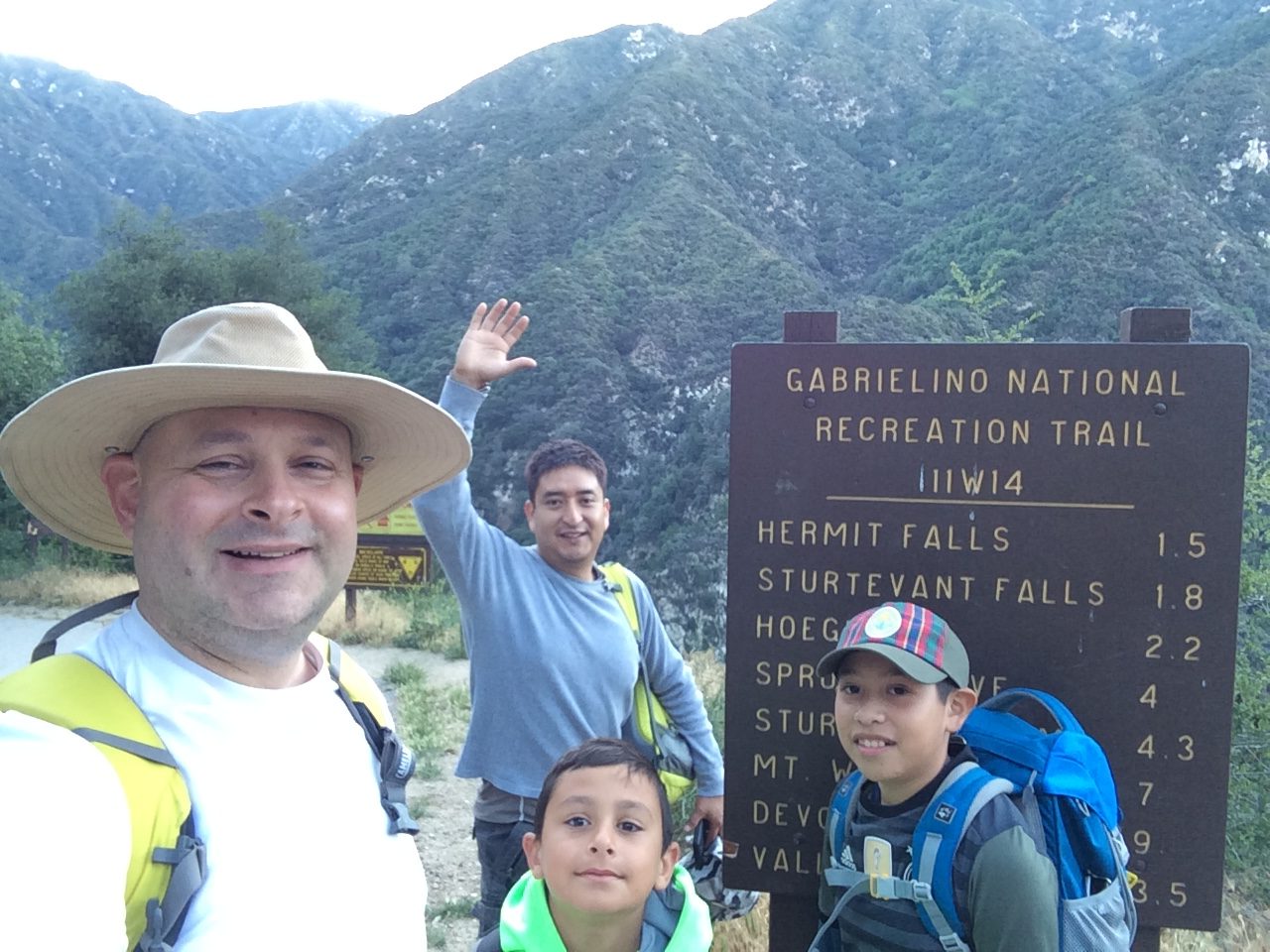 It was a gorgeous day! Sky cleared early, but of course, the Gabrielino Trail and the Sturtevant Trail are completely under shade, so the hike was a breath of fresh air. After stopping at Sturtevant camp for a ride on the swing and to watch them juggle, we continued to the top. The 100 inch telescope was open, so we saw that. We had some lunch at the Cosmic Cafe, then continued down the Mt Wilson Trail to the lower Winter Creek trail, then up heart-attack hill for a 4:00 finish. Both kids were troopers. Matthew M did this one last year, but did not want to continue. Hopefully this year, with Matthew V’s encouragement, he will complete the six-pack.