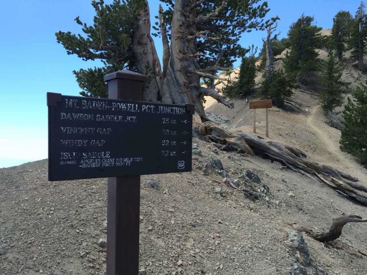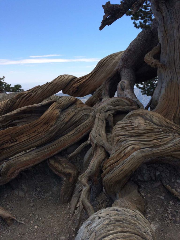 On the far end of the ridge, but before the final climb to the summit you’ll see the gnarled and twisted roots of the Wally Waldron tree. This 1,500 year old limber pine is said to be the oldest in the San Gabriel mountains, and named for a noted Boy Scout leader and volunteer.