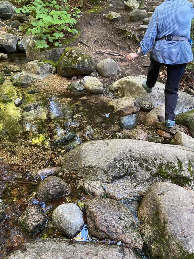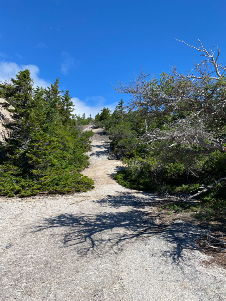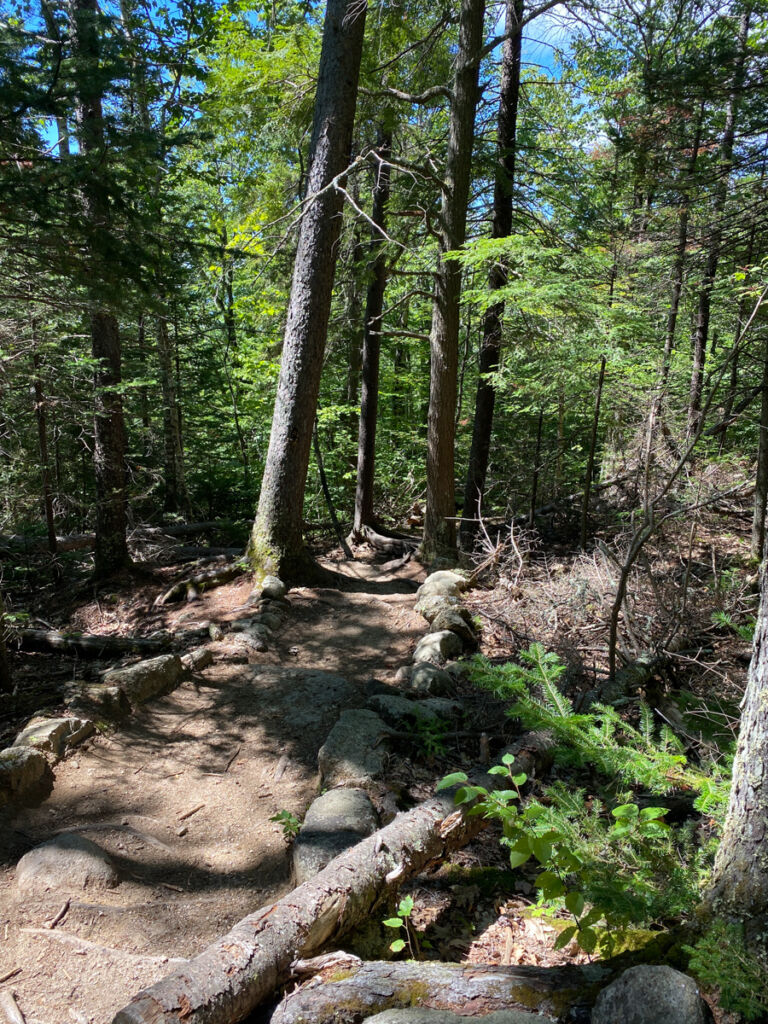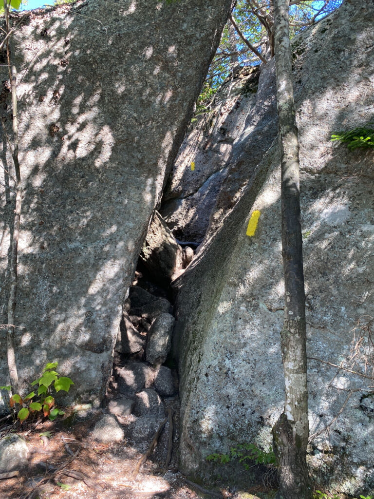 From Welch Mountain, the trail descends for about a mile of granite that’s thankfully not quite as exciting as what you climbed on your ascent. The trickiest part here is finding the trail, as the blazes are sometimes far and few between. This is where it pays to take your time and check your GPS location periodically to make sure you stay on course.