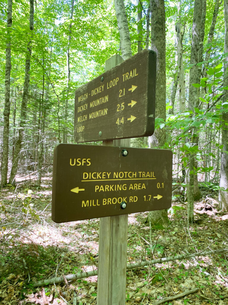 The summit of Welch Mountain is a good spot to take a break and soak in the views. From here, the trail descends to a saddle before climbing again to the taller Dickey Mountain.