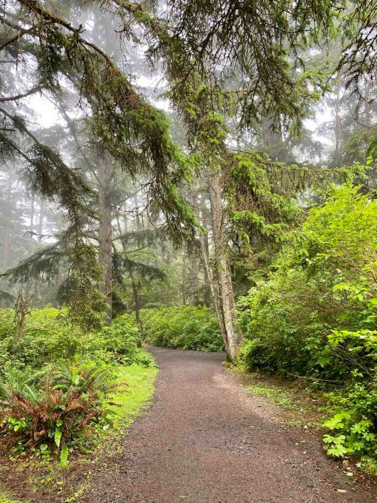 We were car camping at Sunset Bay State Park, and started our hike right from the campground. If you’re driving to the trailhead, you can park in the lot near the grassy area at the south end of the beach. The trailhead is about 13 miles from Coos Bay and takes about 25 minutes to drive.